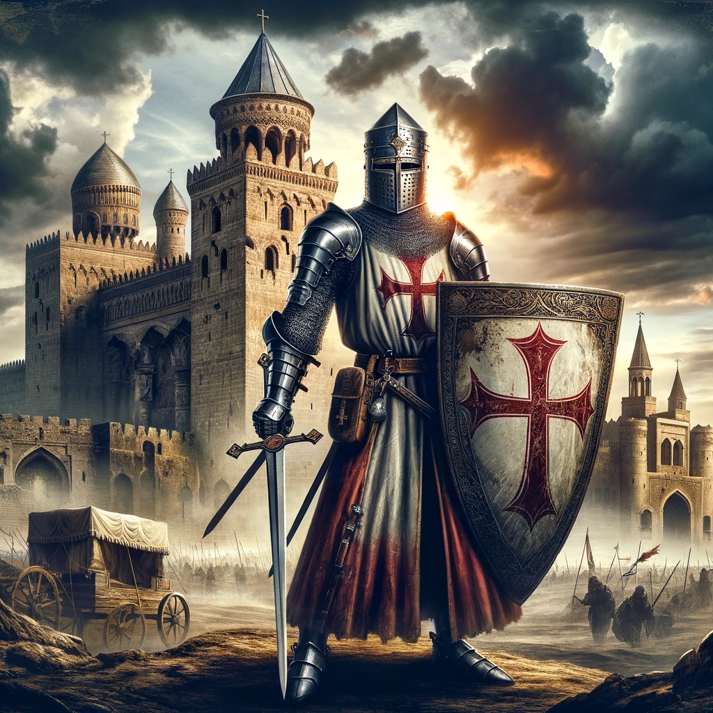 이러한 전략을 사용하여, 십자군 전쟁의 역사적 장소들을 방문하는 여행의 항공권 비용을 절감할 수 있습니다. 이제, 십자군 전쟁을 테마로 한 이미지를 생성하겠습니다.
