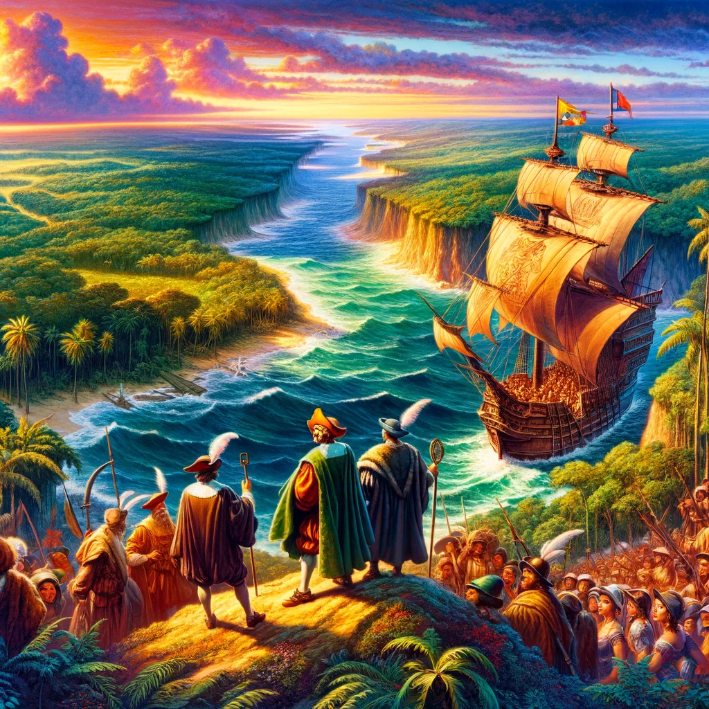 1492년 크리스토퍼 콜럼버스의 대담한 항해는 인류 역사를 새로운 국면으로 이끈 전환점이 되었습니다. 이 항해의 기본적인 목적은 당시 알려진 세계의 동쪽 끝, 인도로 가는 새로운 항로를 찾는 것이었습니다. 콜럼버스와 그의 선원들은 대서양을 건너 아메리카 대륙에 도달함으로써, 당시 유럽인들에게는 전혀 알려지지 않았던 새로운 세계를 발견하게 되었습니다. 이는 단순히 지리적 발견을 넘어, 유럽과 새롭게 발견된 신세계 사이의 문화적, 상업적 교류를 촉진하는 역사적 사건이 되었습니다.